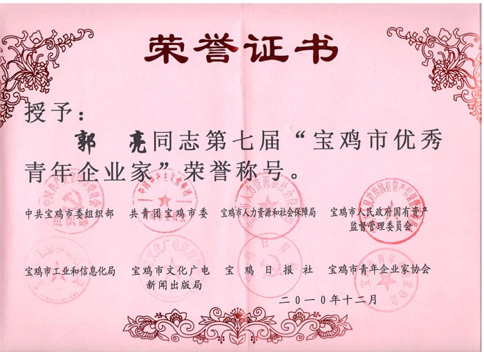 寶雞市優(yōu)秀青年企業(yè)家