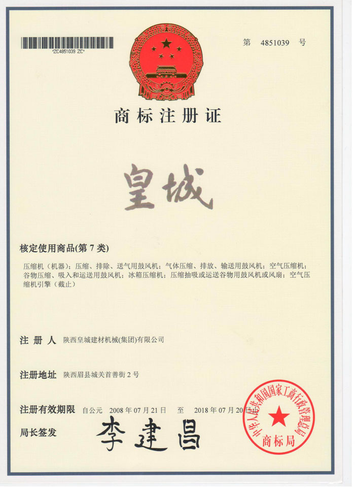 皇城商標(biāo)注冊證