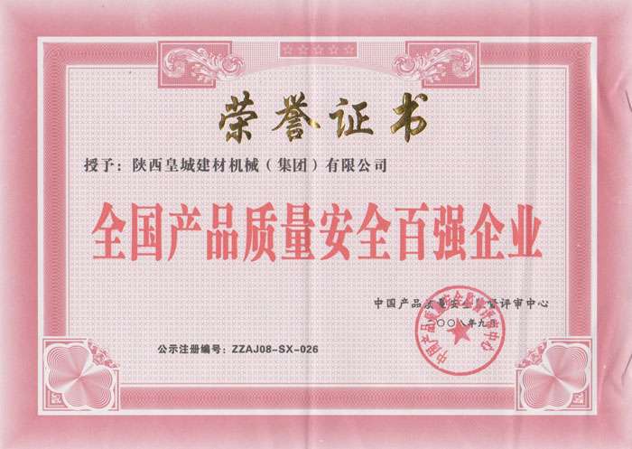 全國質(zhì)量安全百強(qiáng)企業(yè)