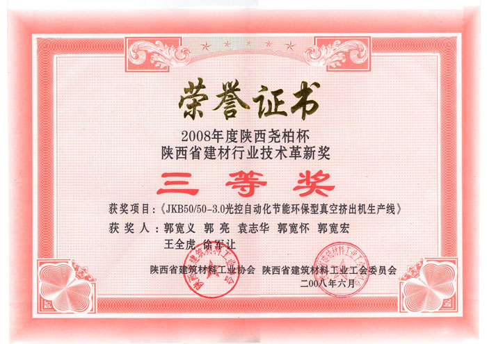 陜西省建材行業(yè)技術(shù)革新獎(jiǎng)